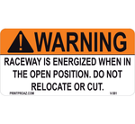 "1.5x3 Warning Raceway in Energized when" Decal with Red/White print