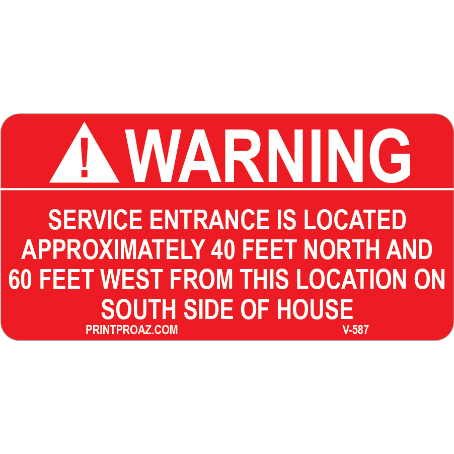 "1.5x3 Warning Service Entrance" Decal with Red/White print