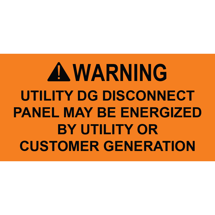 Protect your solar energy systems with this high-visibility and NEC Compliant Warning Utility DG Disconnect label. Featuring orange background and black print, this durable plastic tag clearly states: