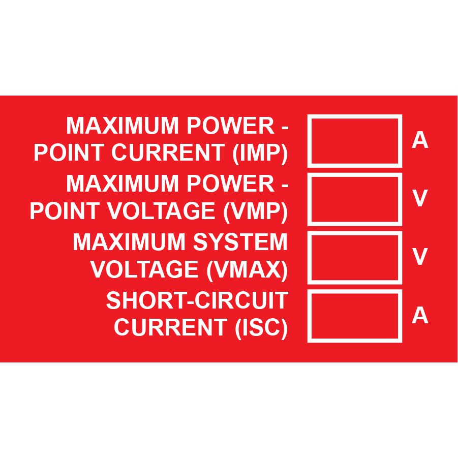 Protect your solar energy systems with this high-visibility and NEC Compliant Maximum Power Point Current label. Featuring bold red and white print, this durable plastic tag clearly states: