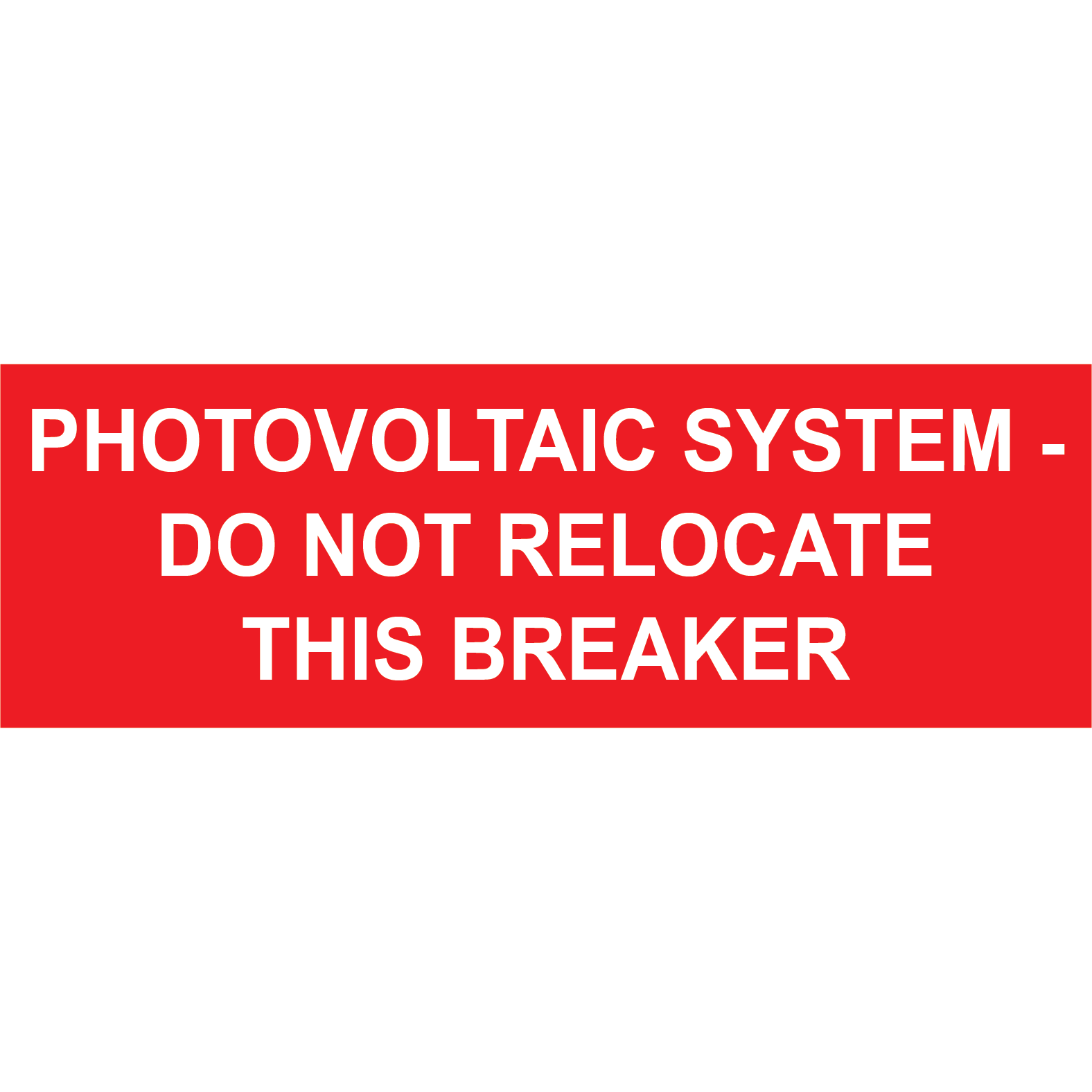 Protect your solar energy systems with this high-visibility and NEC Compliant Photovoltaic System-Do Not Relocate This Breaker label. Featuring bold red and white print, this durable plastic tag clearly states: