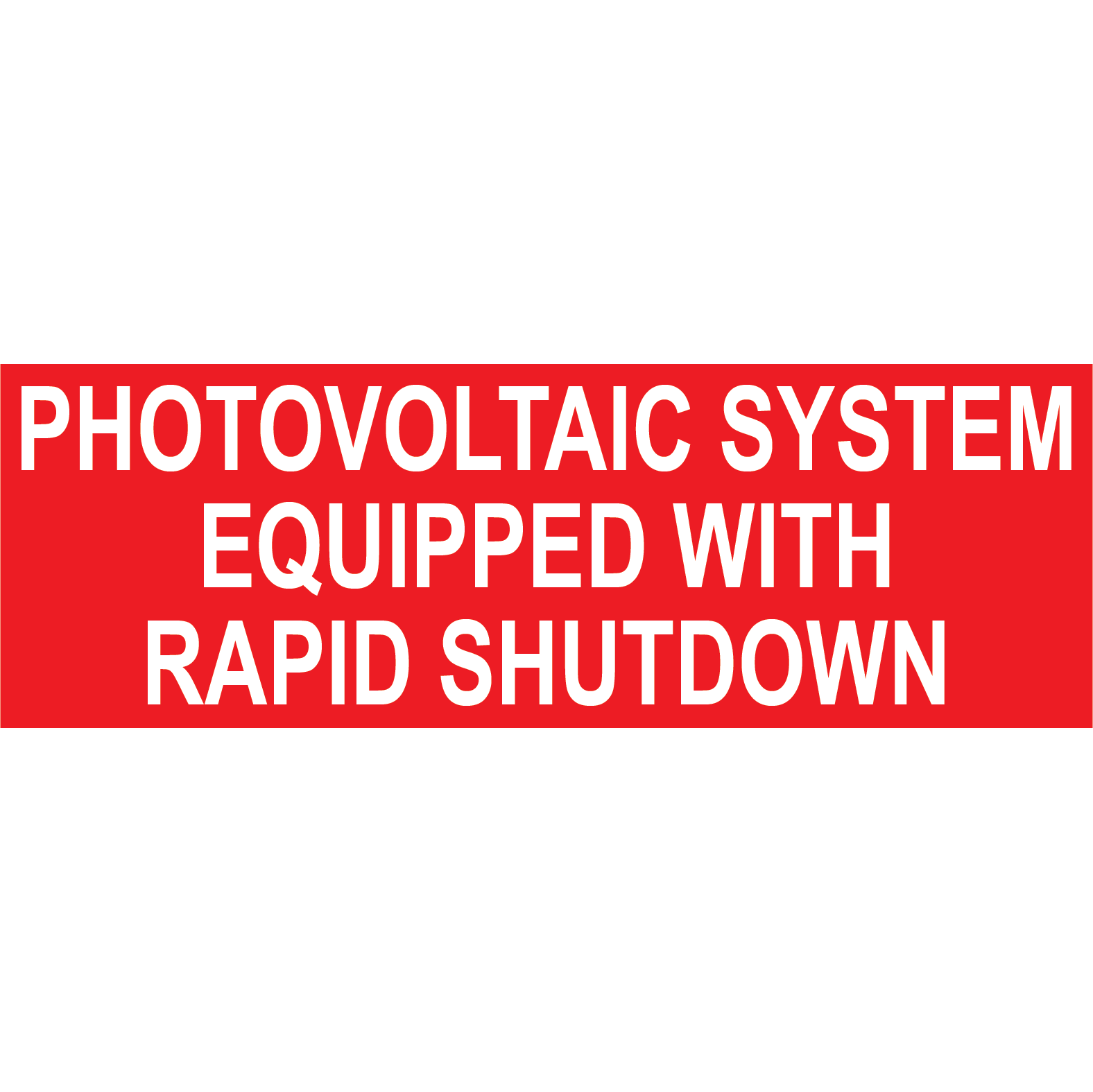 Protect your solar energy systems with this high-visibility and NEC Compliant Photovoltaic System Equipped With Rapid Shutdown label. Featuring bold red and white print, this durable plastic tag clearly states:
