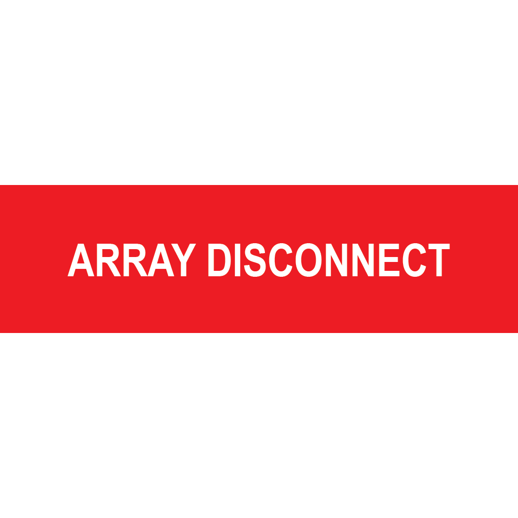 Protect your solar energy systems with this high-visibility and NEC Compliant Array Disconnect label. Featuring bold red and white print, this durable plastic tag clearly states: