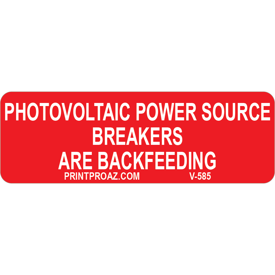 "1x3 PV Power Source Breakers" Decal with Red/White print