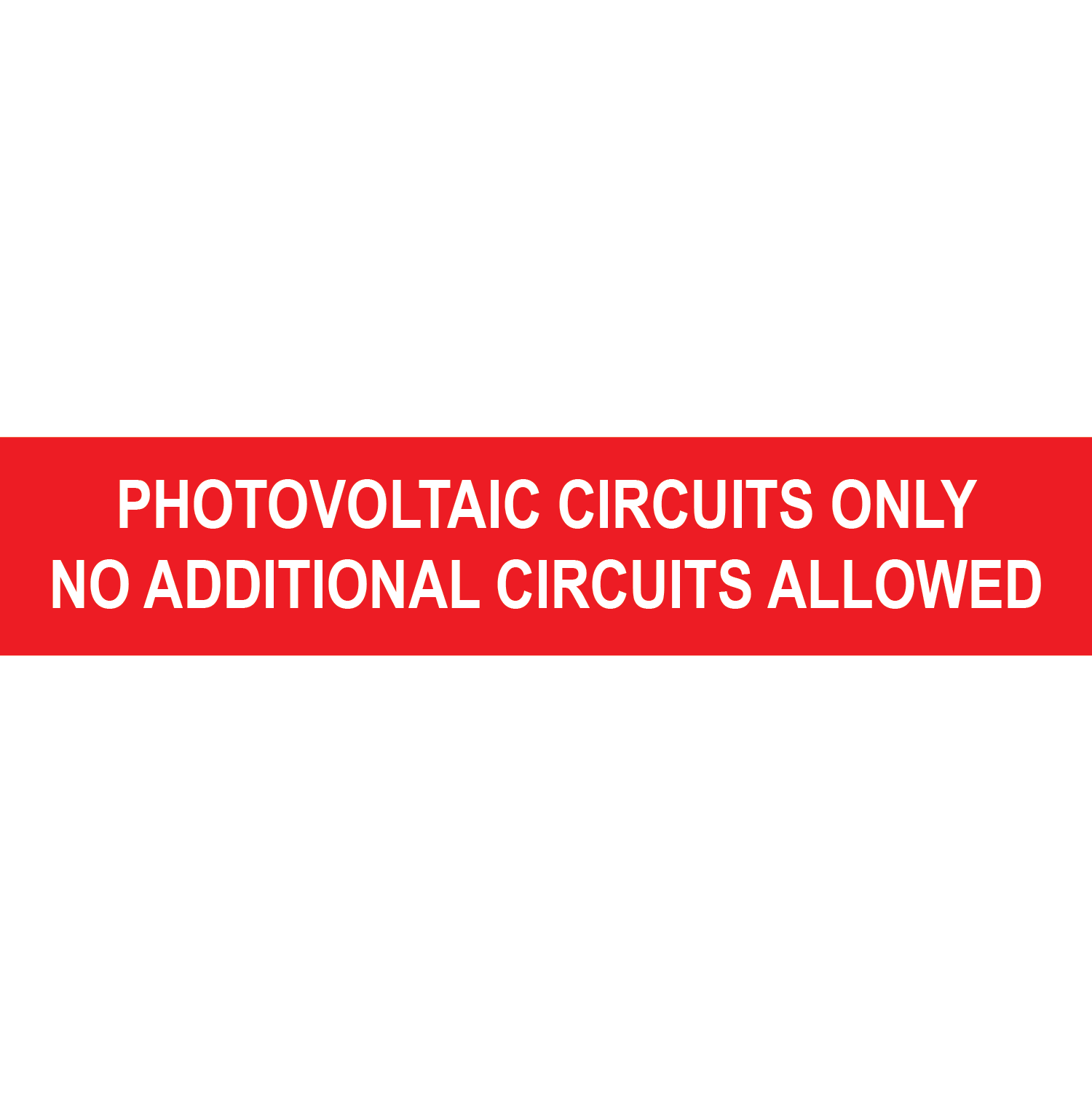 Protect your solar energy systems with this high-visibility and NEC Compliant Photovoltaic Circuits Only label. Featuring bold red and white print, this durable plastic tag clearly states: