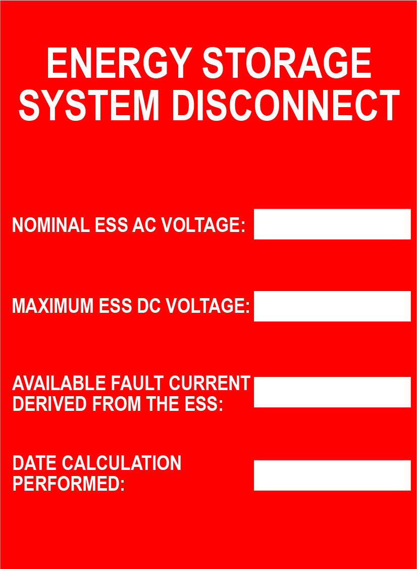 "2.75x3.75 Energy Storage System Disconnect" Red/White plastic