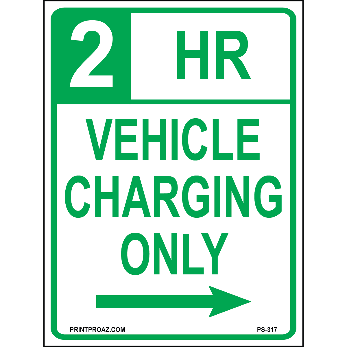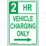 "2 HR Vehicle Charging Only Signs (Right Arrow)" Green/White Print on Aluminum