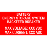 "Battery Energy Storage System Backfeed Breaker" Red/White plastic