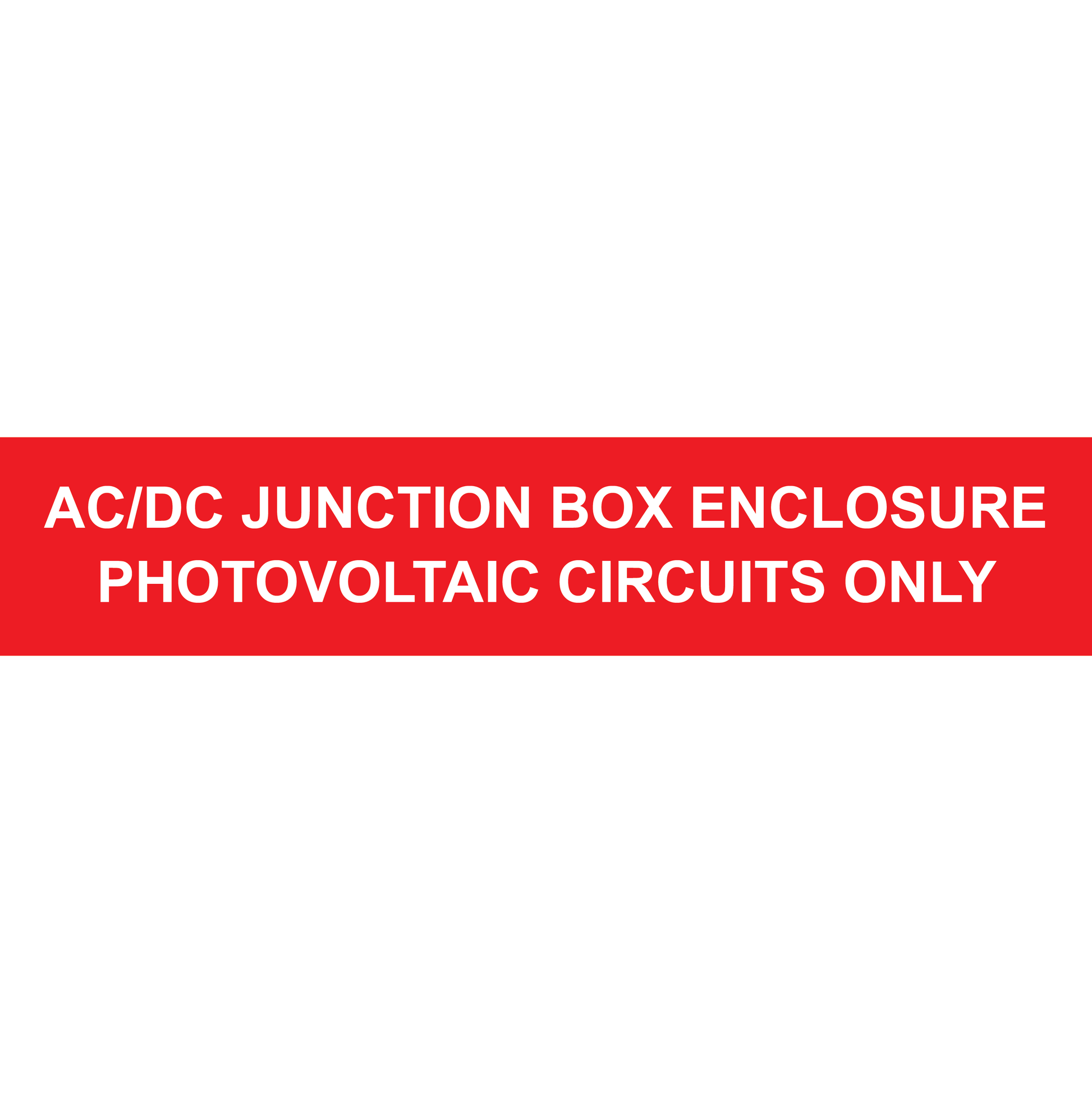 Protect your solar energy systems with this high-visibility and NEC Compliant AC/DC Junction Box Enclosure label. Featuring bold red and white print, this durable plastic tag clearly states: