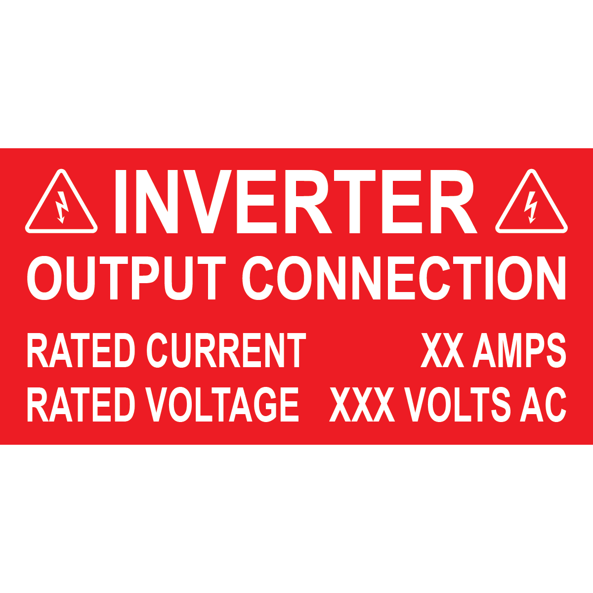Protect your solar energy systems with this high-visibility and NEC Compliant Custom Inverter Output Connection label. Featuring bold red and white print, this durable plastic tag clearly states: