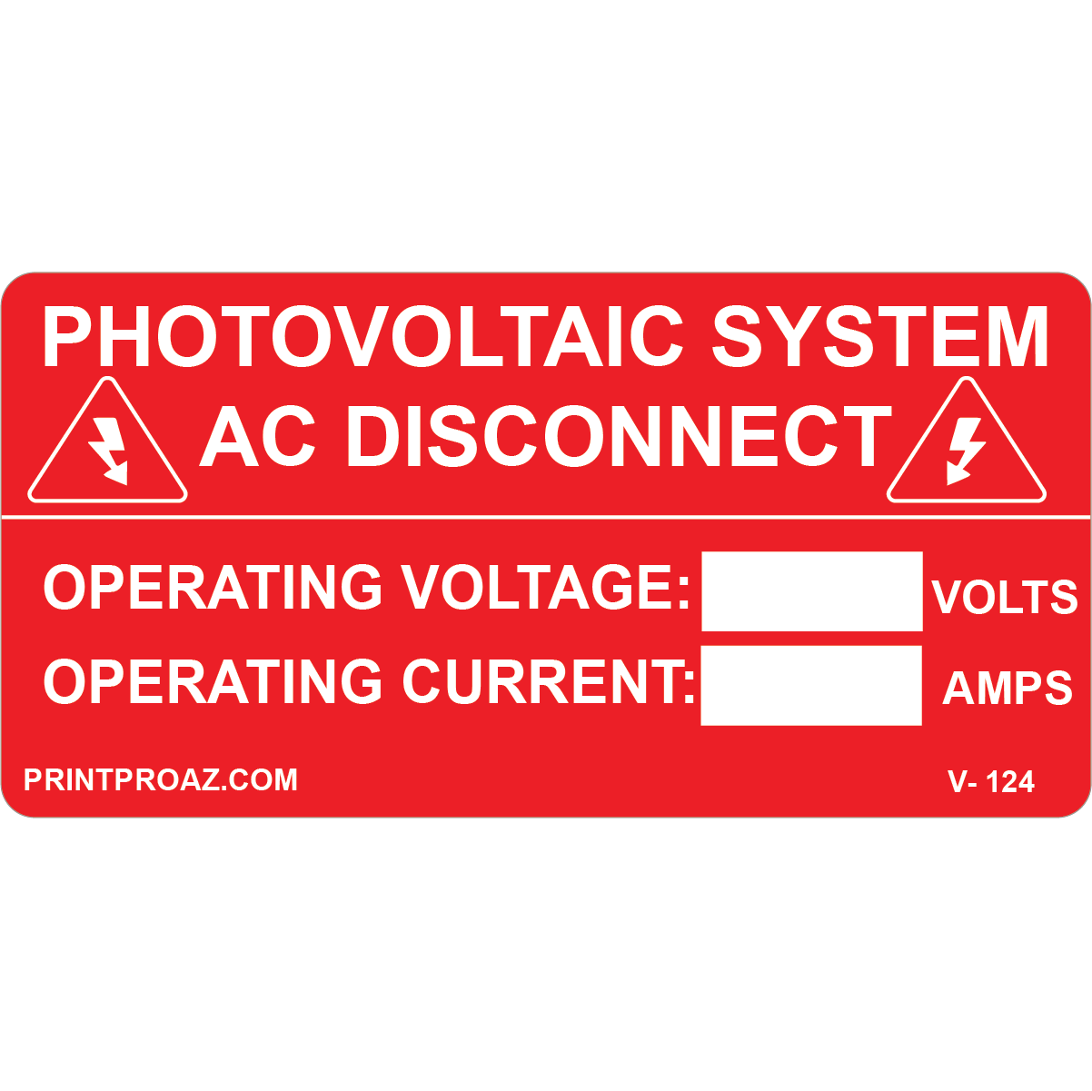 4x2 PHOTOVOLTAIC SYSTEM AC DISCONNECT, Vinyl Decal, V-124