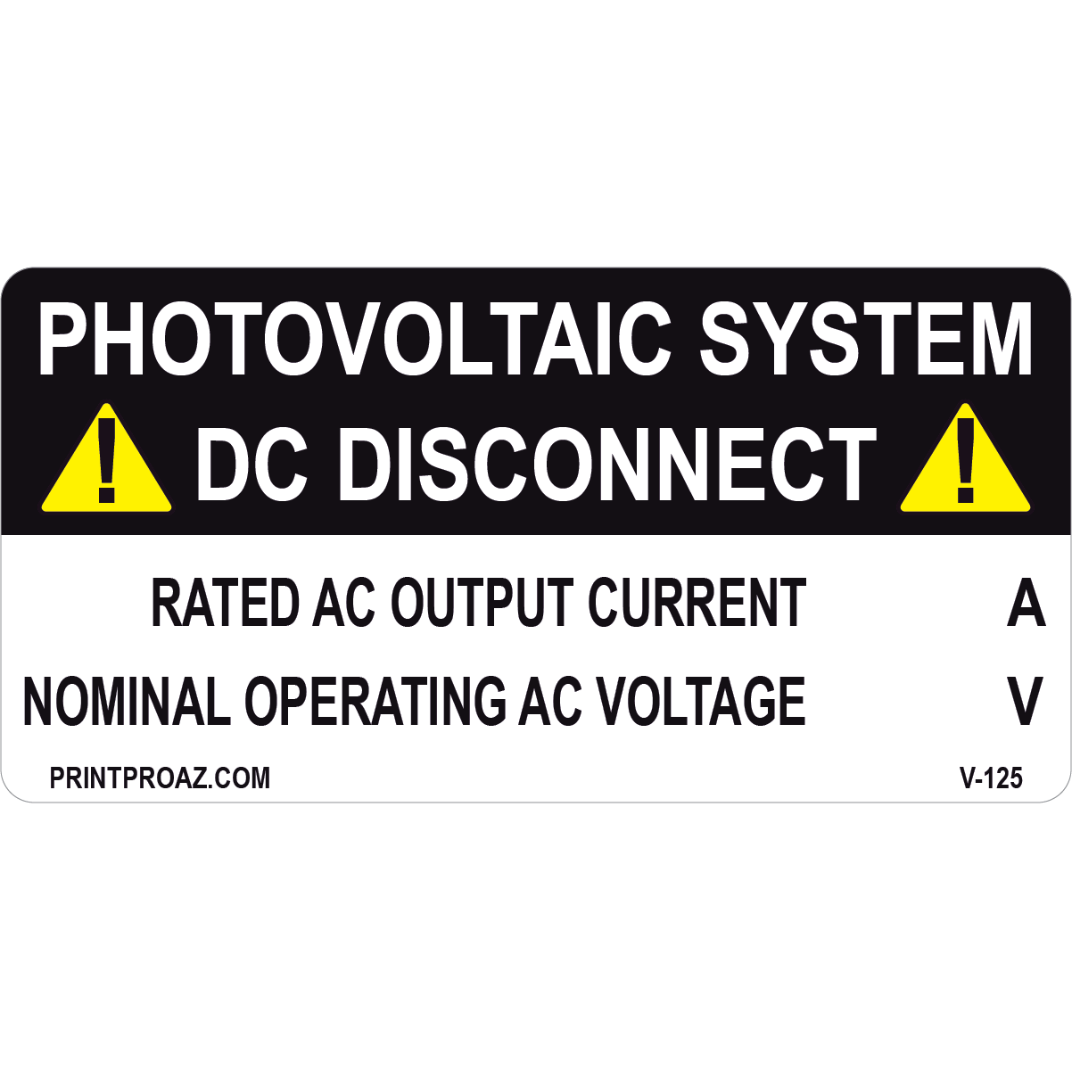This photovoltaic power source decal delivers durable, code-compliant solar labeling that meets NEC standards for electrical safety signage.
