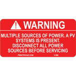 "1.5x3 Warning Multiple Power Sources. A PV Systems" Decal with Red/White print