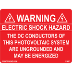 WARNING - ELECTRIC SHOCK HAZARD - THE DC CONDUCTORS OF THIS PHOTOVOLTAIC SYSTEM ARE UNGROUNDED AND MAY BE ENERGIZED
