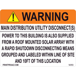 POWER TO THIS BUILDING IS ALSO SUPPLIED FROM A ROOF MOUNTED SOLAR ARRAY WITH A RAPID SHUTDOWN DISCONNECTING MEANS GROUPED AND LABELED WITHIN A LINE OF SITE AND 10FT OF THIS LOCATION
