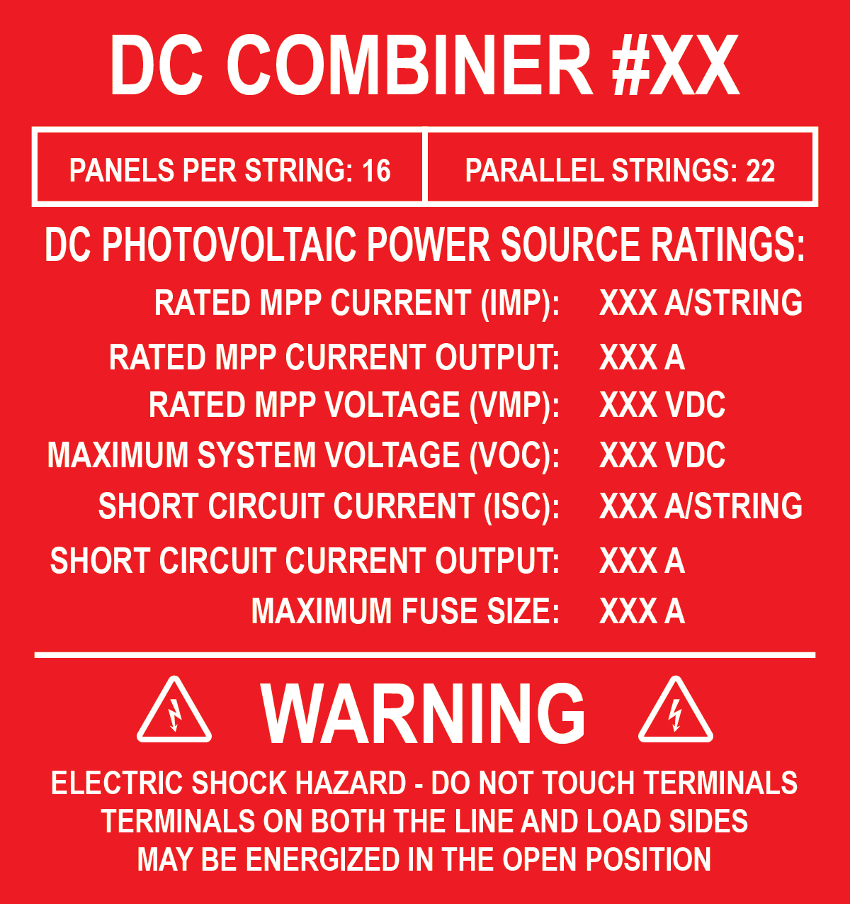VDC SHORT CIRCUIT CURRENT (ISC): XXX A/STRING