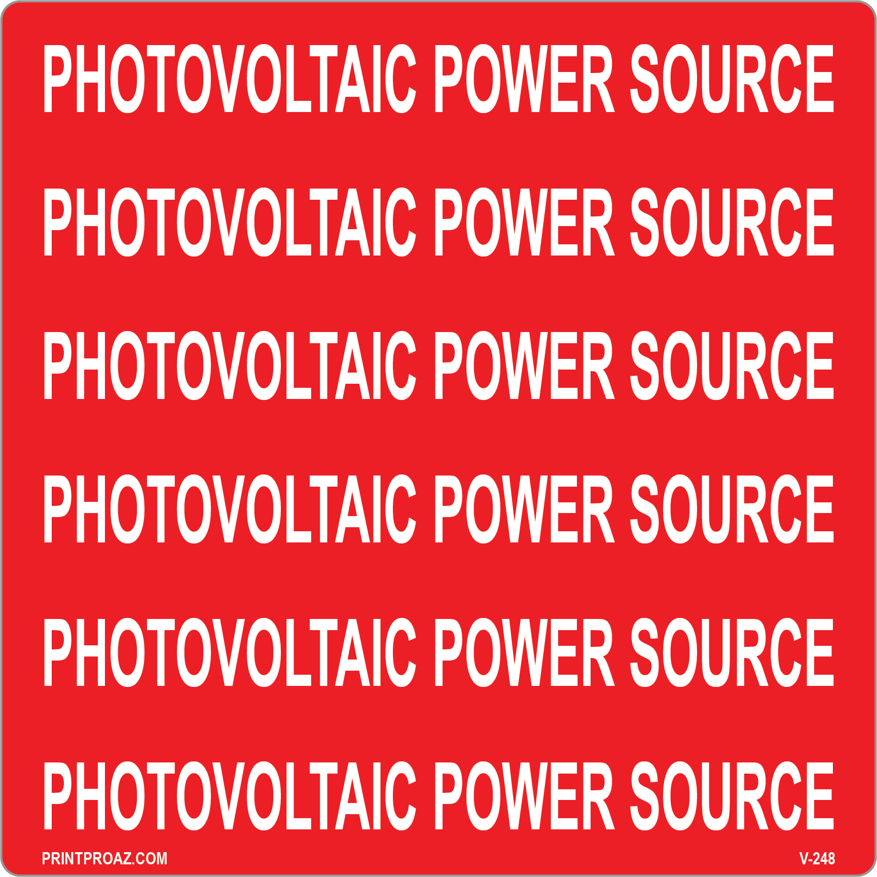 This photovoltaic power source decal delivers durable, code-compliant solar labeling that meets NEC standards for electrical safety signage.