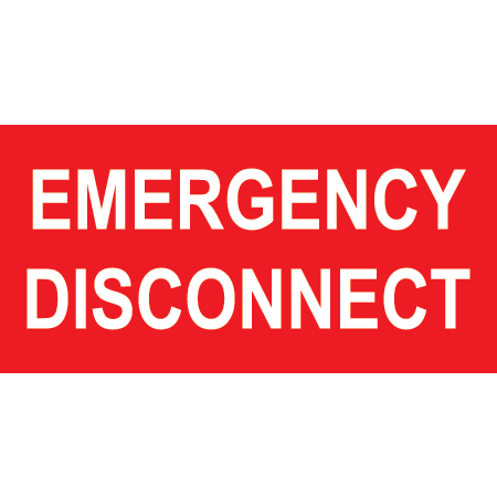 Protect your solar energy systems with this high-visibility and NEC Compliant Emergency Disconnect label. Featuring bold red and white print, this durable plastic tag clearly states:
