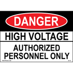 "Danger High voltage Authorized personnel only" 0.06 inch thick White aluminum with Red/Black print