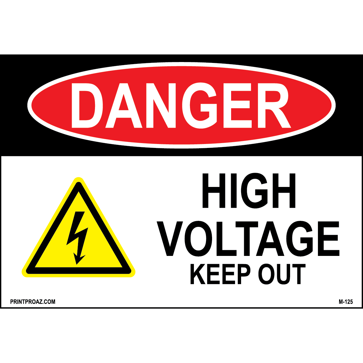 "Danger High voltage Keep out" 0.06 inch thick White aluminum with Red/Black print