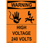 "Warning High voltage 240 volts" 0.06 inch thick Orange aluminum with Black print