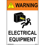 "Warning Electrical equipment" 0.06 inch thick White aluminum with Black/Orange/Yellow print