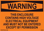 "Warning This enclosure contains high voltage electrical equipment and must not be entered except by permission" 0.06 inch thick Orange aluminum with Black print