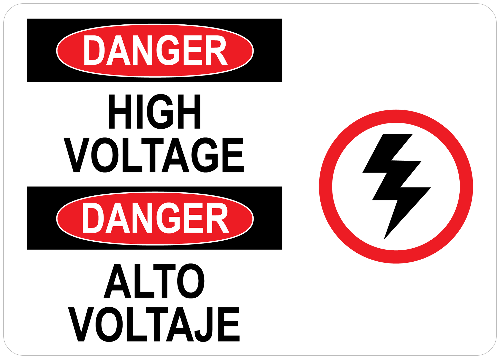 DANGER / PELIGRO SIGN: HIGH VOLTAGE / ALTO VOLTAJE (WITH BOLT SYMBOL)