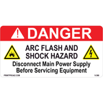 "Danger Arc Flash and Shock Hazard Disconnect Main Power Supply Before Servicing Equipment" Decal with White/Black/Red/Yellow print