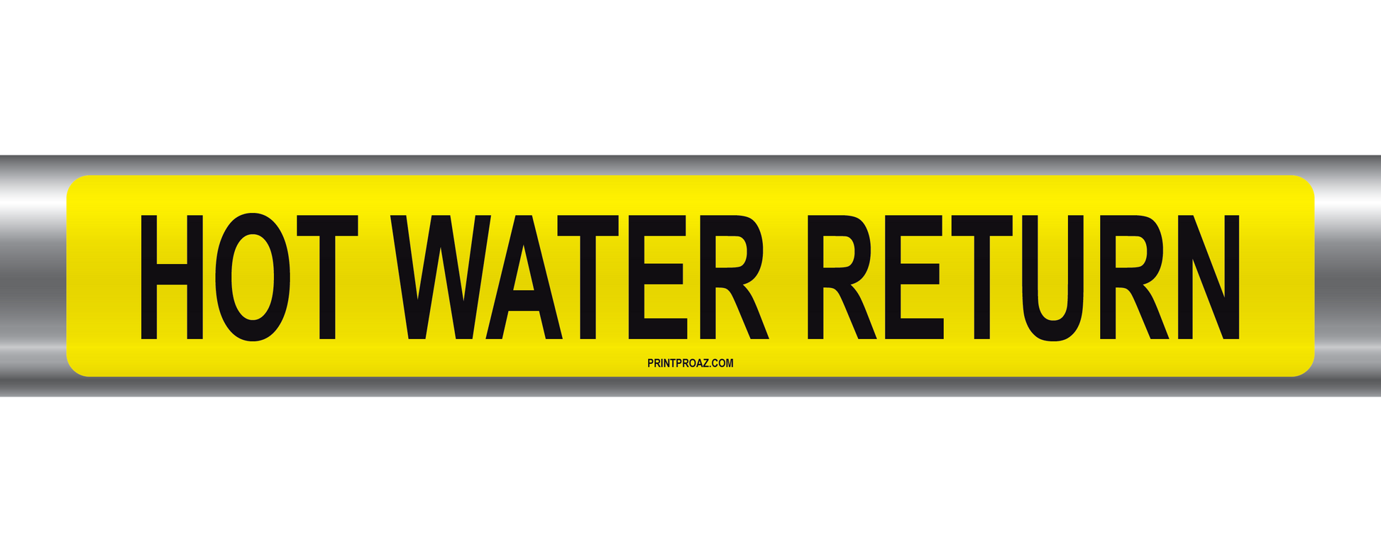 This Hot Water Return Self-Adhesive Pipe Marker uses informational messages for safety identification and compliance. A Hot Water Return Self-Adhesive Pipe Marker is a useful tool to help protect the health and safety of personnel, but is not a substitute for required protective measures for eliminating or reducing hazards.