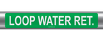 This Loop Water Ret. Self-Adhesive Pipe Marker uses informational messages for safety identification and compliance. A Loop Water Ret. Self-Adhesive Pipe Marker is a useful tool to help protect the health and safety of personnel, but is not a substitute for required protective measures for eliminating or reducing hazards.