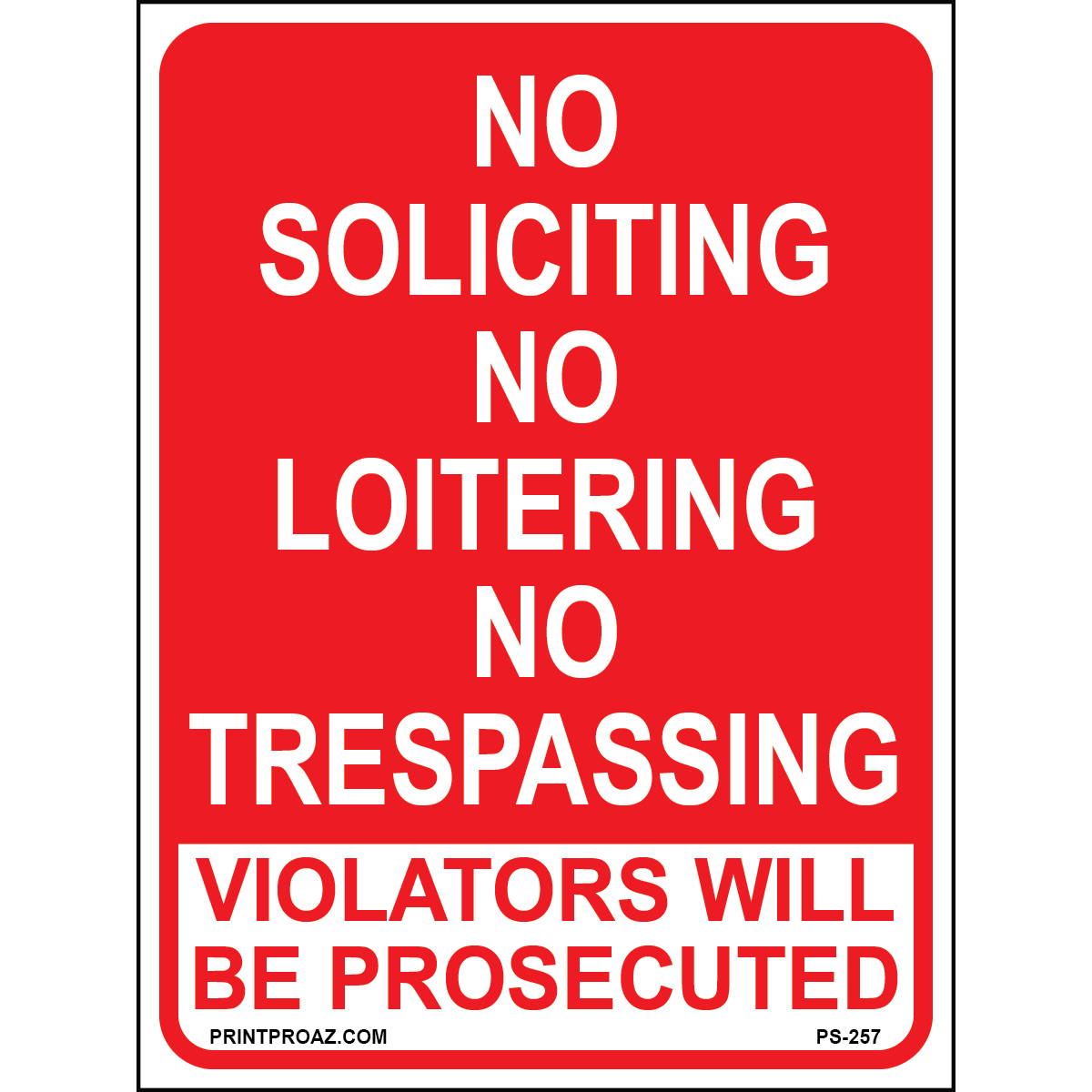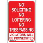 "No Soliciting No Loitering Sign" Black/White Print on Aluminum