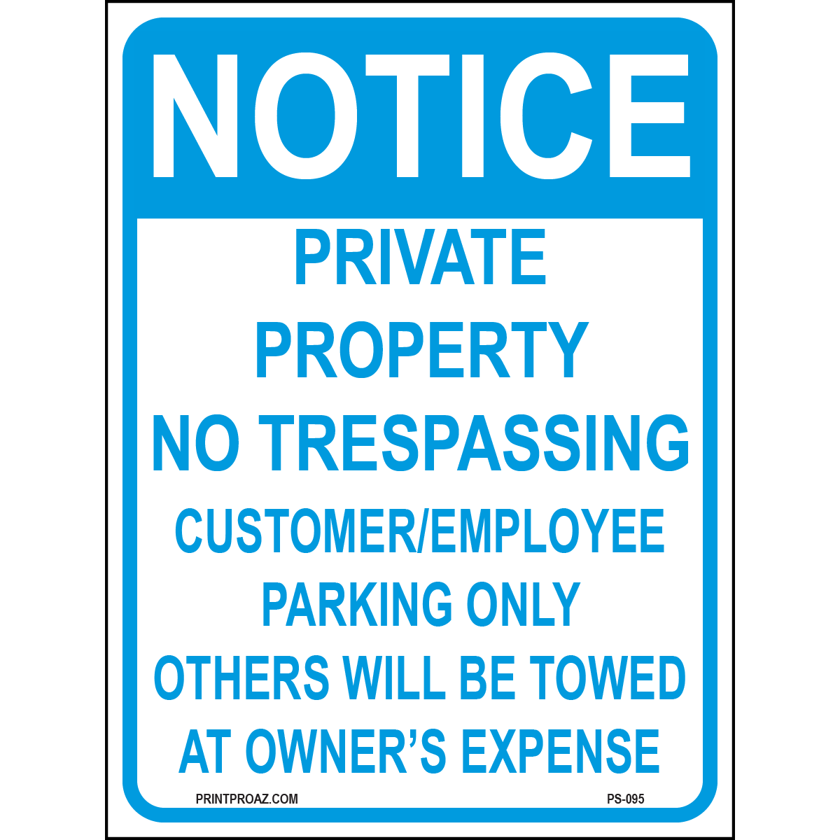"Notice Private Property No Trespassing" Red/White/Black Print on Aluminum
