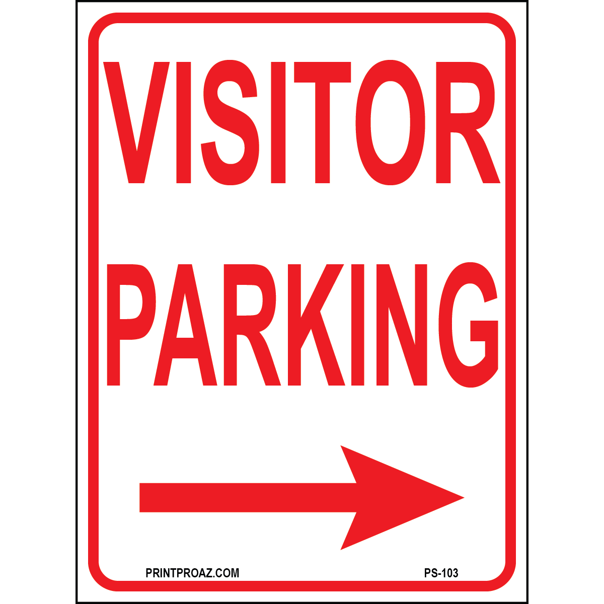 "Visitor Parking (Arrow Right Red)" Red/White/Black Print on Aluminum