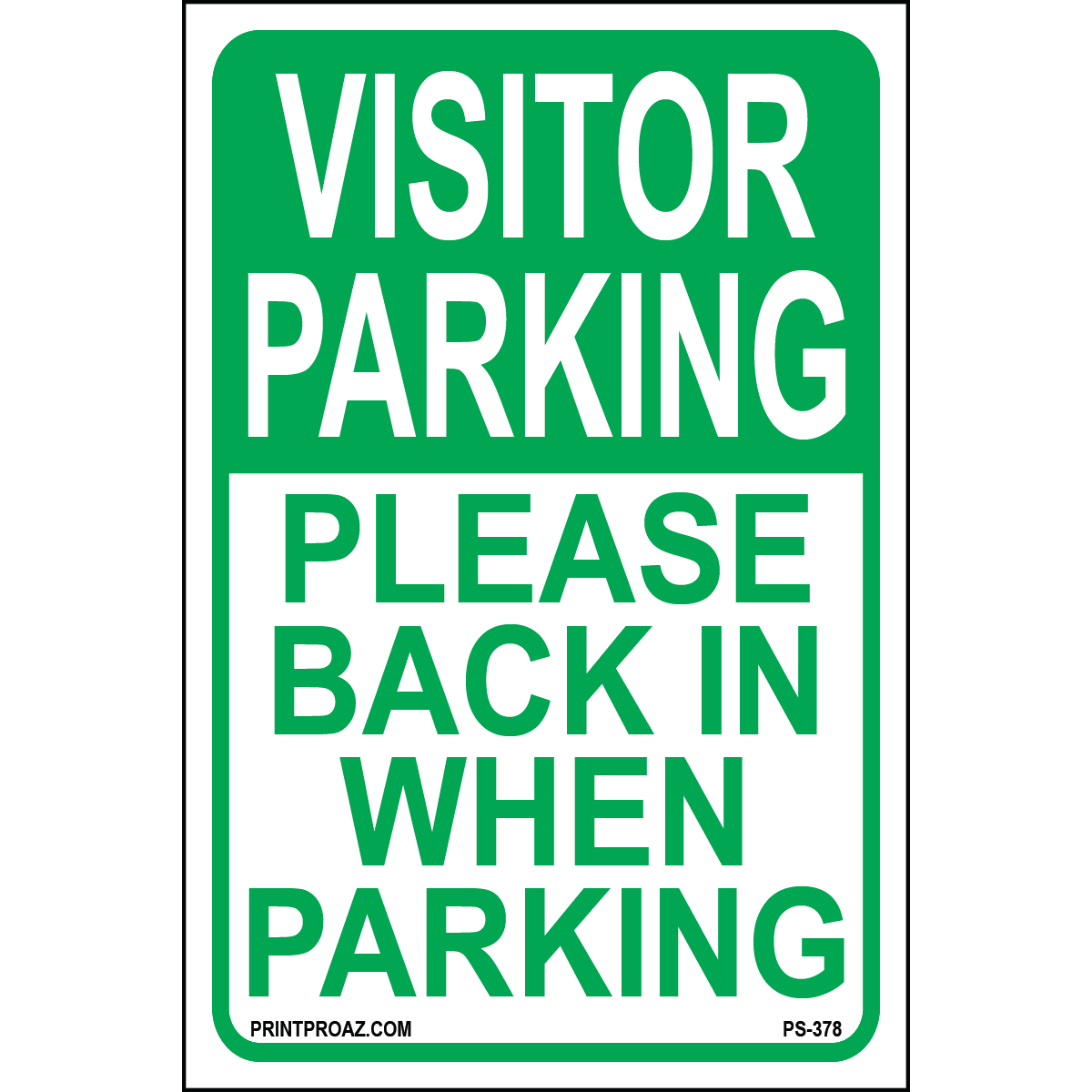 "Visitor Parking Please Back In When Parking" Green/White Print on Aluminum